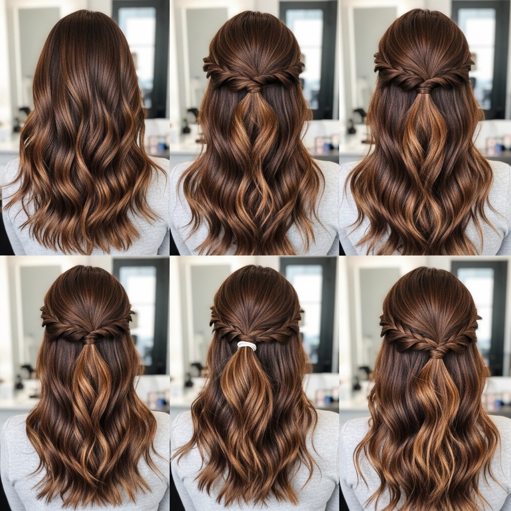 - Half-up hairstyle
